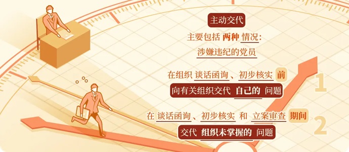 《中國共產黨紀律處分條例》規定,主動交代本人應當受到黨紀處分的問題,可以從輕或者減輕處分。這里所稱的主動交代主要包括兩種情況: