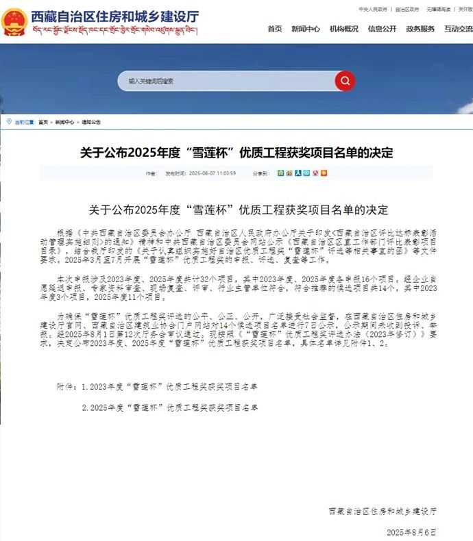 8月7日,西藏自治區住房和城鄉建設廳公布2025年度“雪蓮杯”優質工程獲獎項目名單,由西藏開投吉雅光伏公司投資建設的昌都察雅縣吉塘鎮20萬千瓦+16萬千瓦時儲能牧光互補復合型光伏發電項目榮獲該獎項。