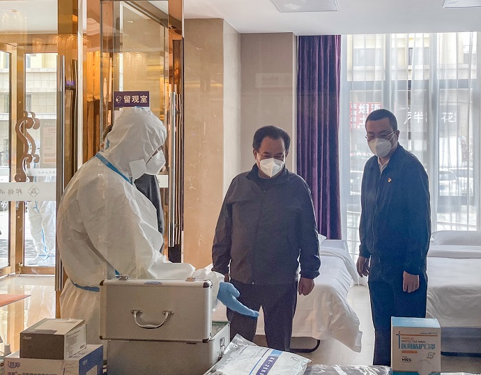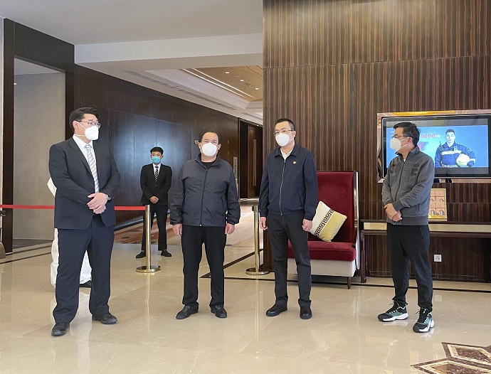 多吉次珠一行詳細察看了西藏開投邦錦花園酒店出入登記點、留觀室、疫情防控物資儲備室、全日制餐廳等區域,聽取了酒店疫情防控工作匯報。聽取匯報后,多吉次珠對酒店全力做好一線抗疫醫務工作者和公安民警后勤保障工作給予高度評價。他指出,西藏開投邦錦花園酒店站位高、有擔當,主動承擔抗疫一線干部職工保障工作重要任務,充分彰顯了國企擔當、國企速度、國企精神,有力發揮了國資國企的“頂梁柱”作用。