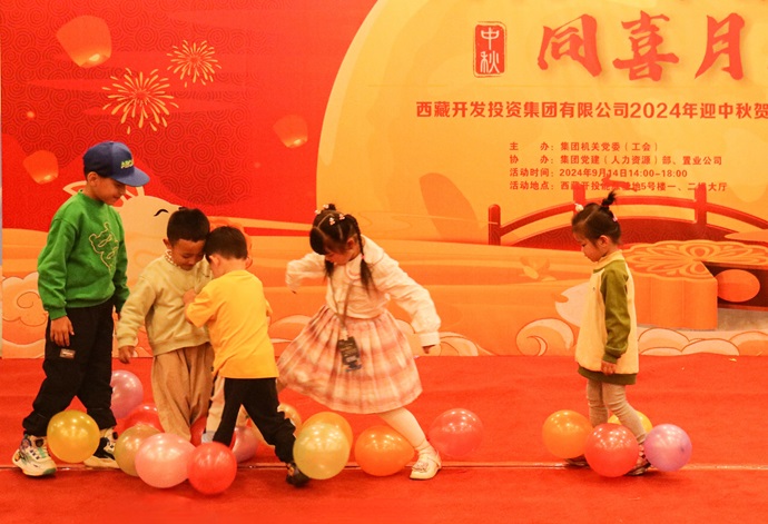 2024年9月14日,“開投一家親 同喜月圓時”西藏開投集團舉辦2024年迎中秋賀團圓活動,這是集團成立以來首次舉辦中秋佳節慶祝活動,旨在讓大家感受我國傳統節日的獨特魅力,營造“民族團結一家親”的良好氛圍,共赴一場濃情秋日的團圓之約。西藏開投集團領導、外部董事、各部門和拉薩周邊各單位干部職工及家屬共150余人歡聚一堂,藏、漢、回、滿、苗等十多個民族組成的大家庭一起共迎佳節。