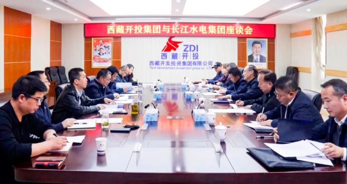 10月30日,西藏開投集團黨委書記、董事長祁騰武與長江水電集團黨委書記、董事長張華忠在拉薩舉行座談,西藏開投集團黨委專職副書記、董事羅布次仁,集團黨委委員、董事、總會計師陳焱罡,長江水電集團黨委委員、副總經理張金鋒等參加座談。