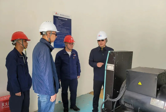 集團黨委副書記、副董事長、總經理劉剛(右一)嘎堆水電站開展安全生產檢查。