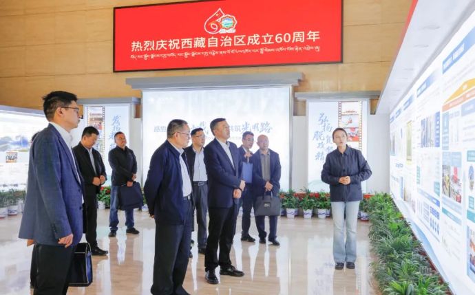 祁騰武一行參觀了國網西藏電力公司企業展廳,詳細了解西藏電網發展歷程、援藏成果及在脫貧攻堅、鄉村振興工作中的重要貢獻。祁騰武高度評價國網西藏在極端條件下實現全區通電以及西藏電網實現跨越式發展的成就。