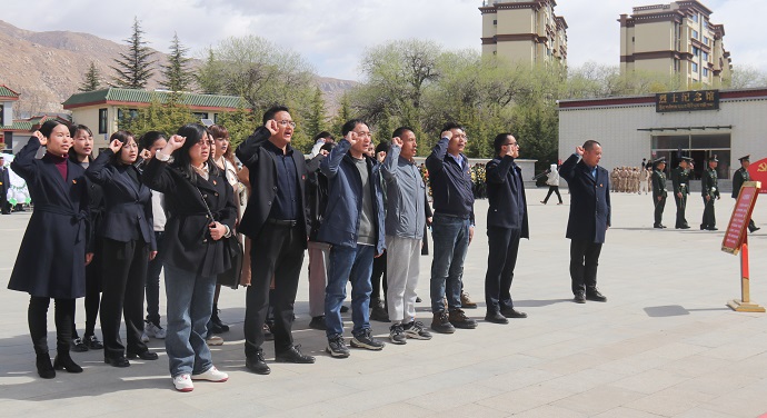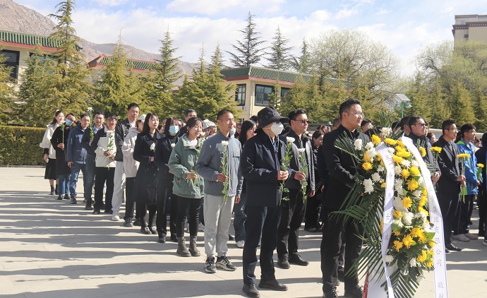 拉薩市烈士陵園內(nèi)松柏蒼翠、莊嚴(yán)肅穆。在革命烈士紀(jì)念碑前,參加活動(dòng)的全體黨員職工重溫了入黨誓詞、合唱國歌并敬獻(xiàn)鮮花、清掃陵園,向革命先輩們致以最崇高的敬意和表達(dá)無盡哀思與懷念。