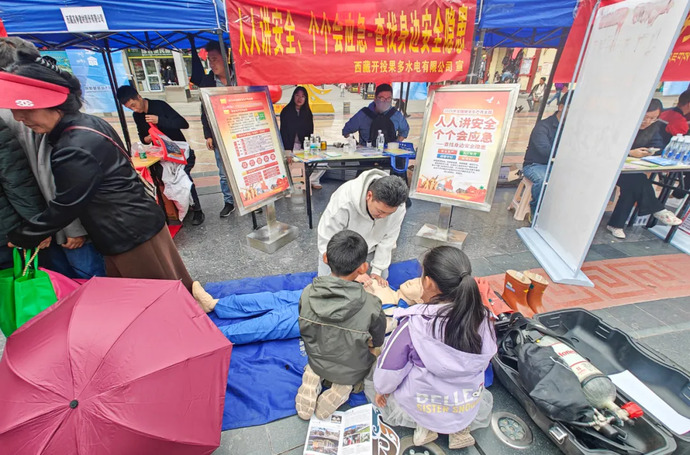 6月16日,西藏開投果多水電公司積極響應昌都市安全生產委員會辦公室及昌都市應急管理局邀請,參加昌都市“人人講安全、個個會應急——查找身邊安全隱患”為主題的安全宣傳咨詢日活動。活動現場,果多水電公司向市民發放了安全用電手冊,積極普及安全用電知識,現場講解了各電壓等級驗電棒、三相短路接地線、高壓拉閘桿及正壓式空氣呼吸器、五點式安全帶等多種安全設備相關知識,并開展了心肺復蘇模擬器實操演示,吸引了眾多市民駐足觀摩,部分市民還積極參與了心肺復蘇模擬實操。