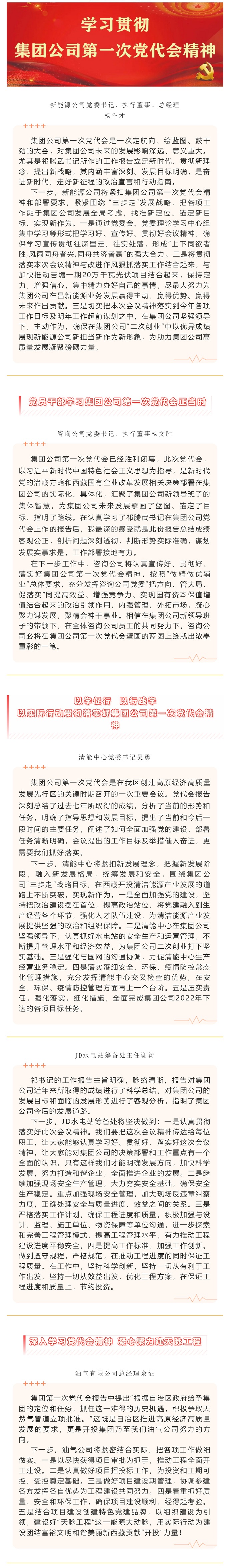 學習貫徹集團公司第一次黨代會精神