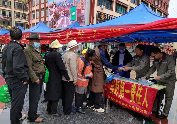 6月16日上午,西藏開投果多水電有限公司在昌都市茶馬廣場組織開展了主題為“遵守安全生產法 當好第一責任人”的安全生產月和安全生產萬里行咨詢日活動。