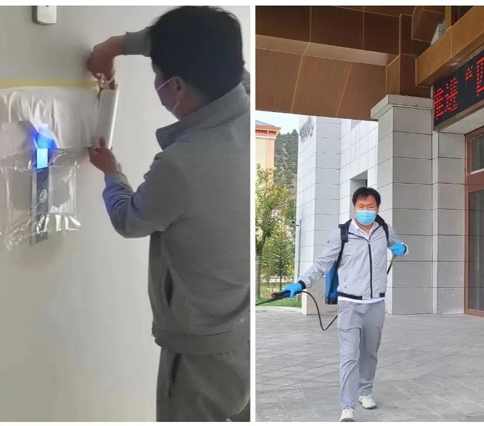 此次疫情發展伊始,酒店周邊已多處發生感染病例,距最近的高風險區域不到100米。孫海崗帶領部門人員,沖在“疫”線,堅持每天對酒店各個區域進行2次消殺,不留死角。由于酒店占地面積大,單體建筑分布較廣,完成一次全面徹底消殺用時需要2小時以上。孫海崗深知消殺工作的重要性,在工作過程中任勞任怨,埋頭苦干。