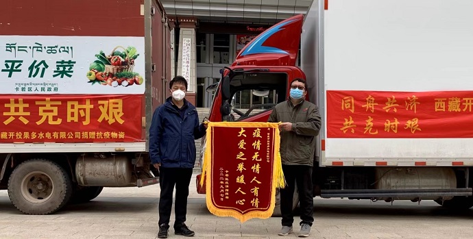 9月7日,西藏開投果多水電有限公司向昌都市卡若區人民政府捐贈一批價值16萬元的抗疫生活物資,以實際行動履行社會責任,踐行國企擔當,用真情和愛心傳遞社會正能量。