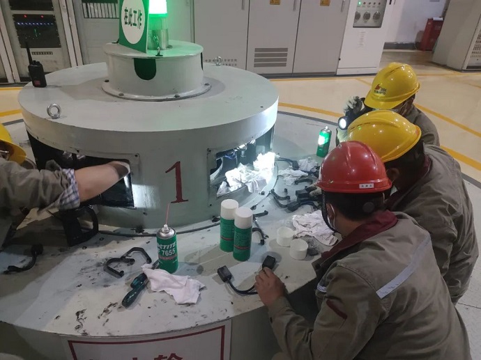 “作為奮斗在一線的運維人員,保證機組平穩安全運行就是我的使命。”孫繼東如是說。8月18日,110千伏竹卡變電站10千伏室1325PT柜保險熔斷,他立即帶著兩名運維人員前往110千伏竹卡變電站及時消缺以保證用戶用電。9月12日,藏中孤網運行期間利用機組短暫的停機機會,群策群力對1號機組碳刷進行清潔更換,保證機組安全穩定運行。