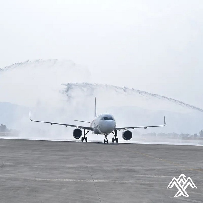 首次亮相在博卡拉國際機場的喜航客機,穿過象征民航最高禮儀的“水門”,受到隆重歡迎。此架飛機隨后于15時44分起飛,于16時17分返回加德滿都。