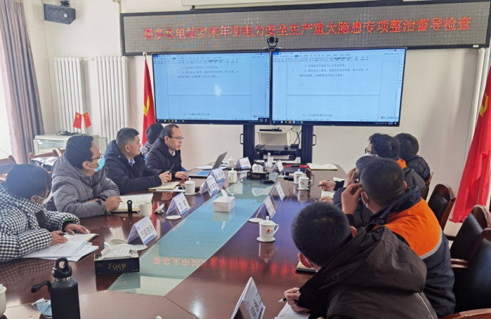 果多水電公司向督導組匯報了2022年電力安全生產工作情況及歲末年初電力安全生產重大風險隱患專項整治排查工作情況。督導組查閱了果多水電公司關于上級文件精神宣貫落實、電力安全生產風險重大隱患排查整治、迎峰度冬等相關工作臺賬,按照《重大電力安全隱患判定標準》對穩定控制系統、繼電保護系統、升壓站等設備的運行、維護和檢修情況進行了現場督導。