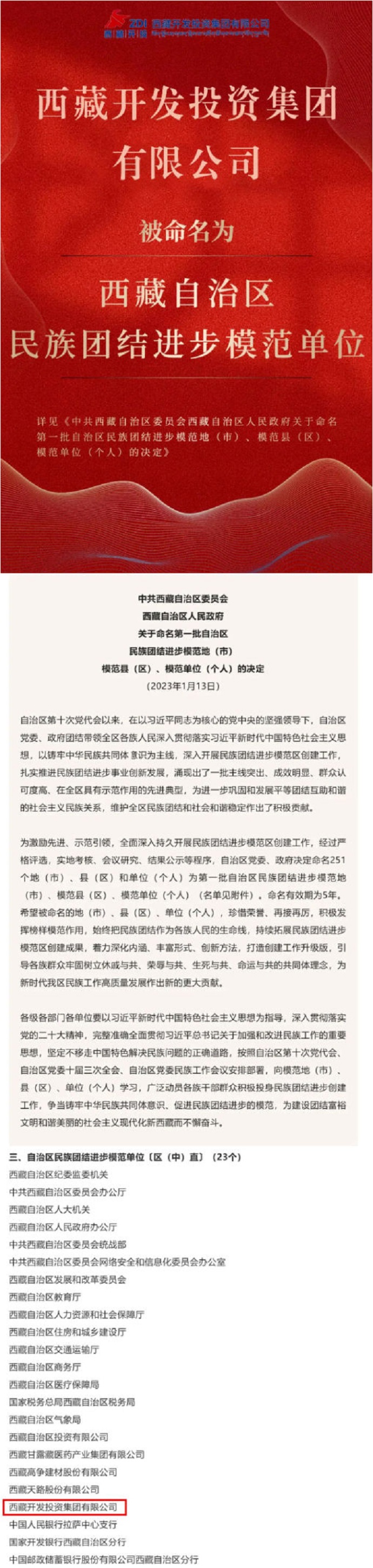 捷報(bào)傳來(lái) _ 西藏開(kāi)投集團(tuán)被命名為“西藏自治區(qū)民族團(tuán)結(jié)進(jìn)步模范單位”