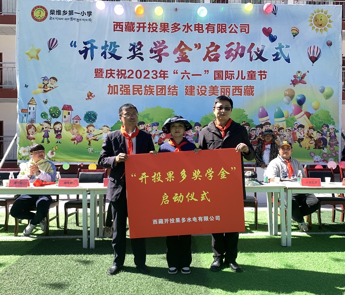 活動現場舉行了“開投果多獎學金”啟動儀式及凈水設備捐贈儀式。果多水電公司董事長、總經理宋亞東表示,“開投果多獎學金”的設立,旨在獎勵品學兼優的學生,鼓勵大家努力學習,奮發向上,努力成長為國家的棟梁之材。柴維鄉小學校長代表全校師生對果多水電公司融入地方經濟社會發展、支持教育事業、積極承擔社會責任的善舉表示衷心的感謝,并希望同學們將善舉轉化為學習、前進的強大動力,努力學習,勵志成才,以優異的成績回報社會,努力成為對社會有用的人才。