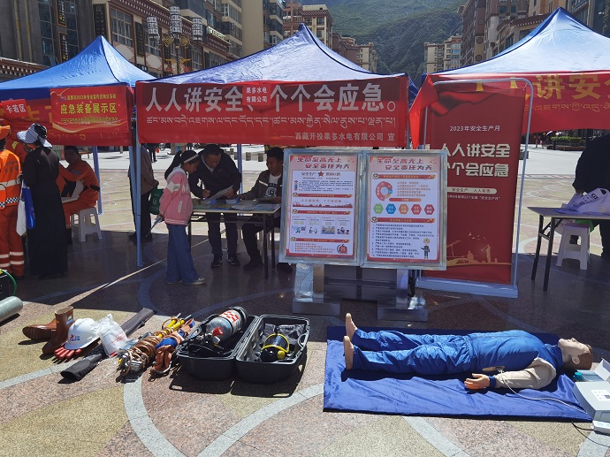 今年6月是第22個全國“安全生產月”,主題為“人人講安全、個個會應急”。果多水電公司受昌都市應急管理局邀請,在茶馬廣場開展“6.16安全宣傳咨詢日”活動。