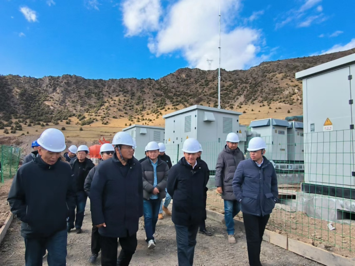 旦巴深入升壓站、儲能系統、中控室等電站生產一線,先后察看了升壓站和光伏區現場情況,并聽取項目進度、質量、安全環水保及生產運維準備等方面的匯報。