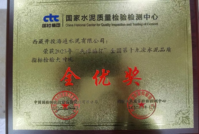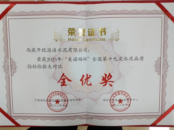 近期,西藏開(kāi)投海通水泥有限公司獲得“美諾福杯”全國(guó)第十九次水泥品質(zhì)指標(biāo)檢驗(yàn)大對(duì)“全優(yōu)獎(jiǎng)”。