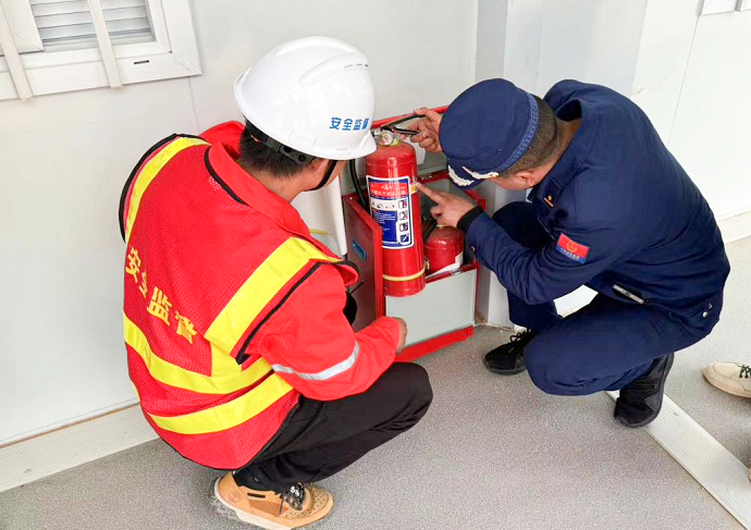 演練結束后,消防人員帶領項目管理人員對辦公區(qū)、宿舍、食堂等區(qū)域進行防火安全巡查,通過逐個檢查和詳細講解,進一步排除火災安全隱患。