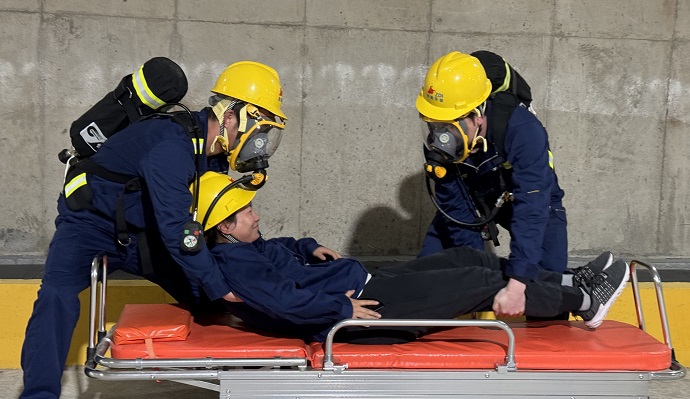 此次競賽分為理論安全知識競賽和技能實操兩個部分。通過理論知識競賽,培養(yǎng)員工學習安全知識的積極性、主動性和創(chuàng)造性,達到“人人要安全、個個會應急”的目標,提高從業(yè)人員安全生產及突發(fā)事件的應對能力。技能實操競賽,通過佩戴正壓式呼吸器50米內擔架救人、兩人2盤消防水帶連接回收等項目,全方位考核參賽選手應急救援和協作能力。
