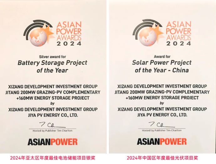10月22日,2024年度亞洲能源大獎(2024 Asian Power Awards)獲獎名單在新加坡正式揭曉,由西藏開投吉雅光伏公司主導建設并運營的吉塘200MW+160MWh儲能牧光互補復合型光伏項目榮膺“2024年亞太區年度最佳電池儲能項目銀獎”和“2024年中國區年度最佳光伏項目獎”兩項大獎。