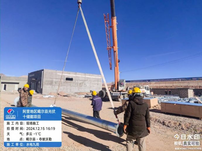 ▲噶爾光伏發電項目,現場施工人員開展避雷針吊裝作業。