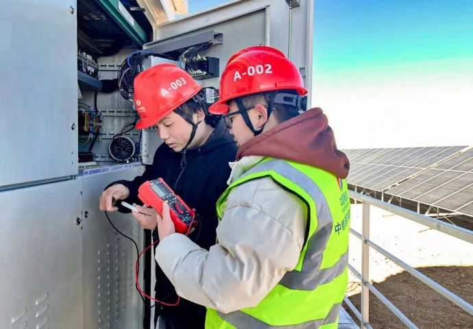 ▲改則光伏項目,現場工作人員檢修發電前箱變設備。