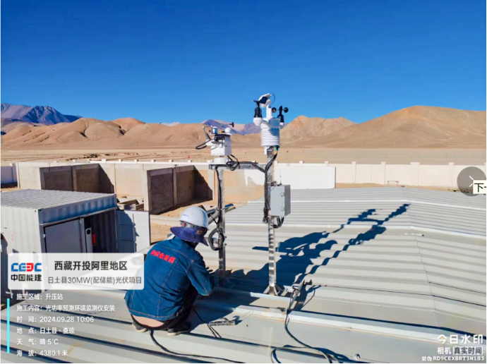 ▲日土光伏項目,現場施工人員開展光功率預測環境檢測儀安裝作業。
