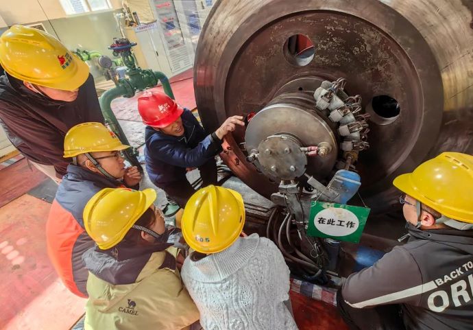近日,嘎堆水電公司1號機組開展年度檢修工作。公司組織新員工赴檢修現場了解水輪發電機組系統布置,熟悉設備構造,了解機組工作原理,使他們對機組工作過程有了更深刻的認識,全面提高隱患辨識能力,為公司機組長期安全穩定運行保駕護航。