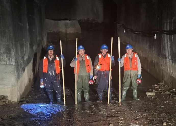 12月3日,公司組織對(duì)全長16.3公里的灌溉輸水洞開展全面檢查,重點(diǎn)排查長期運(yùn)行中可能存在的凍融破壞、巖體應(yīng)力變化等隱患。經(jīng)細(xì)致檢測(cè),輸水洞整體運(yùn)行狀態(tài)良好,完全滿足今冬明春供水需求,為后續(xù)灌溉工作奠定了堅(jiān)實(shí)的安全基礎(chǔ)。