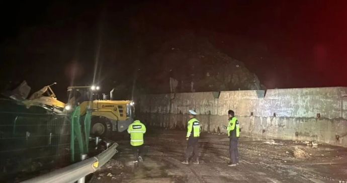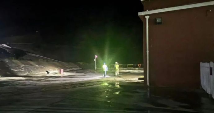 現(xiàn)場(chǎng)工作人員深夜進(jìn)行主汛期庫(kù)周公路清通作業(yè)。