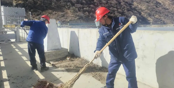 近日,西藏開投嘎堆水電公司黨支部組織全體黨員開展“清潔大壩環境 守護高原生態”主題黨日活動,集中對水庫大壩周邊及壩頂路面區域進行環境整治。