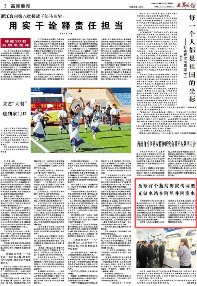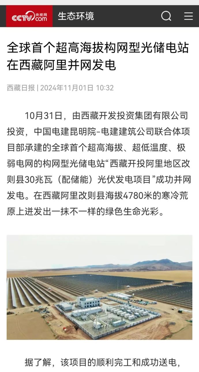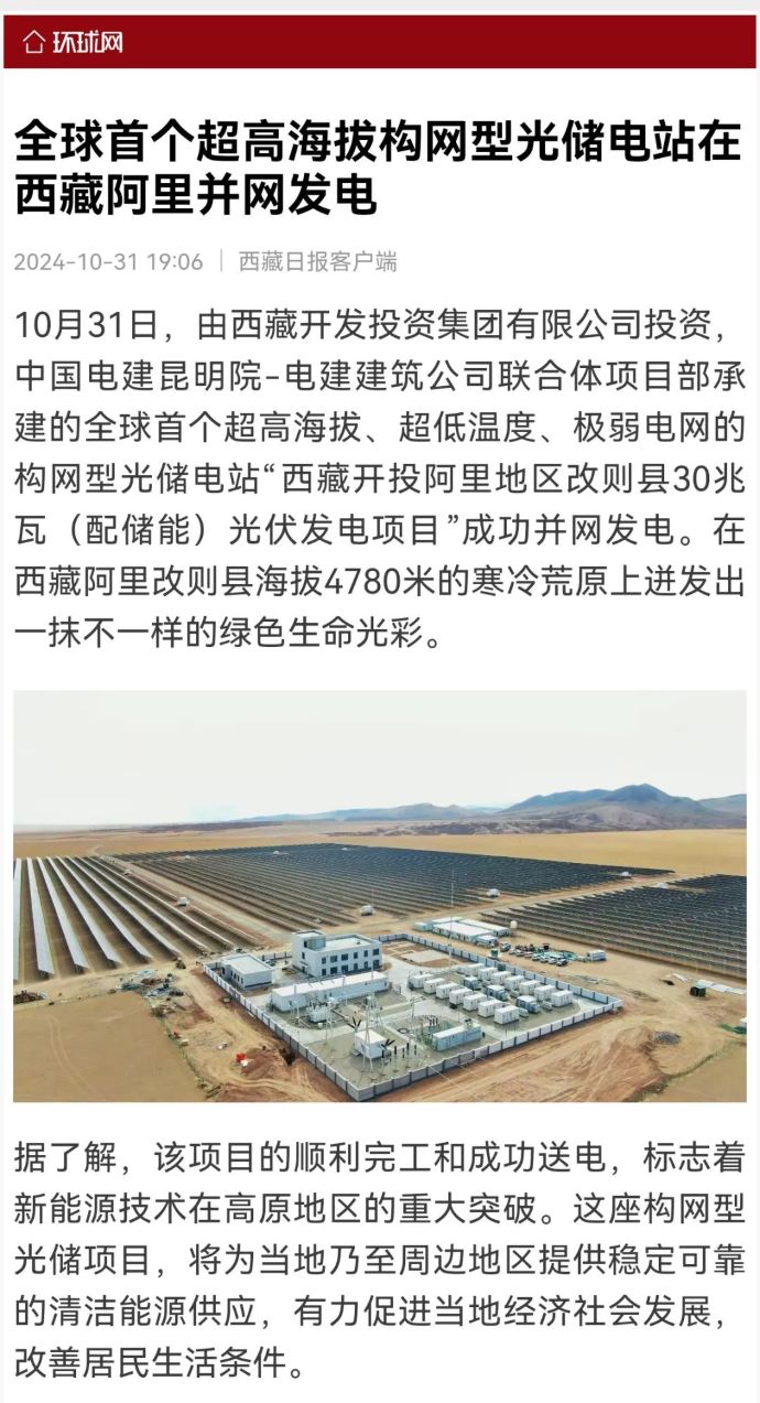 媒體報道丨全球首個超高海拔構網型光儲電站在西藏阿里并網發電