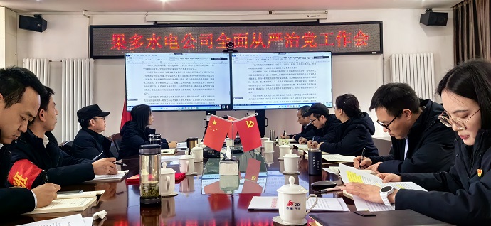 3月28日,果多水電公司召開全面從嚴治黨工作會,深入學習貫徹習近平總書記在二十屆中央紀委三次全會上的重要講話精神、《中國共產黨紀律處分條例》、中央紀委國家監委文章《國資央企反腐敗高壓態勢持續鞏固》、集團公司全面從嚴治黨工作會議精神、《中國共產黨廉潔自律準則》等。會上與各部門簽訂了《2024年度黨風廉政建設責任書》,與全體黨員、中層及以上干部簽訂《2024年度廉潔從業承諾書》。果多水電公司黨支部書記宋亞東主持會議并講話,全體干部職工參加。