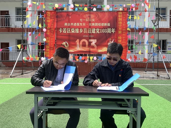 活動上,觀看了文藝表演,參加了“黨史、黨紀、普法”知識問答,向“光榮在黨50年”的老黨員頒發紀念章及慰問金,與柴維鄉人民政府簽訂了《2024年卡若區柴維鄉人民政府與西藏開投果多水電有限公司政企聯動促團結共發展協議書》。果多水電公司黨支部書記、董事長、總經理宋亞東表示,果多水電公司將秉持“建設一座電站、帶動一方經濟、保護一片環境、造福一方百姓、共建一方和諧”的理念,進一步強化內部管理,保障安全生產運行,不斷提升企業效益,積極履行社會責任,集聚資源惠及群眾,深化地企合作共贏發展,為建設團結富裕文明和諧美麗的社會主義現代化新西藏做出更大貢獻。