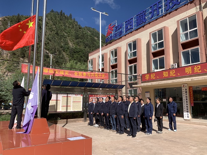 7月1日,迎著和煦的朝陽,果多水電公司全體人員在辦公樓前整齊列隊。隨著一聲洪亮的指令,升旗儀式正式開始,伴隨著高亢激昂的國歌聲,鮮艷的五星紅旗冉冉升起,迎風飄揚,全體人員面向國旗行注目禮。大家心潮澎湃、豪情滿懷,共同慶祝中國共產黨成立103周年,共同表達對黨、對祖國的忠誠和熱愛。