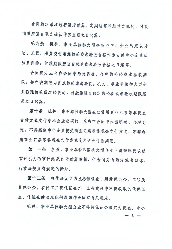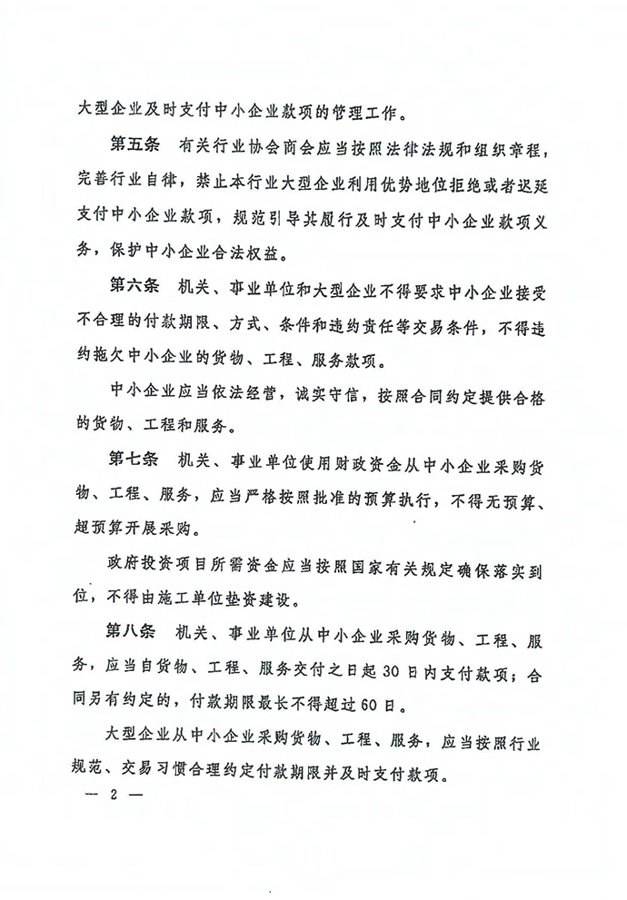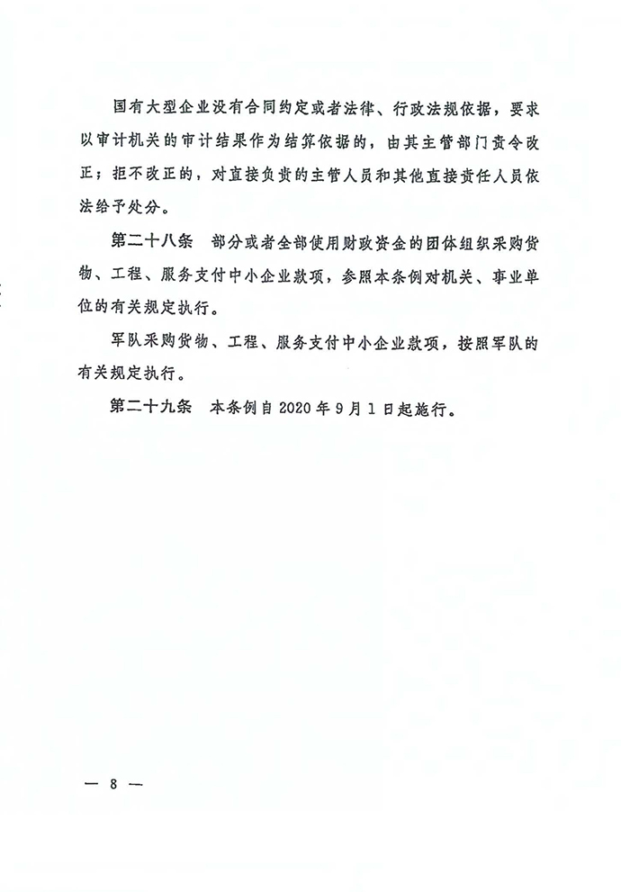 保障中小企業(yè)款項支付條例