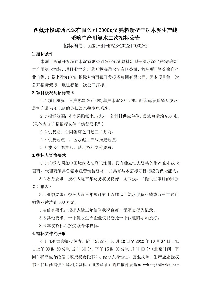 西藏開投海通水泥有限公司 2000t/d 熟料新型干法水泥生產線