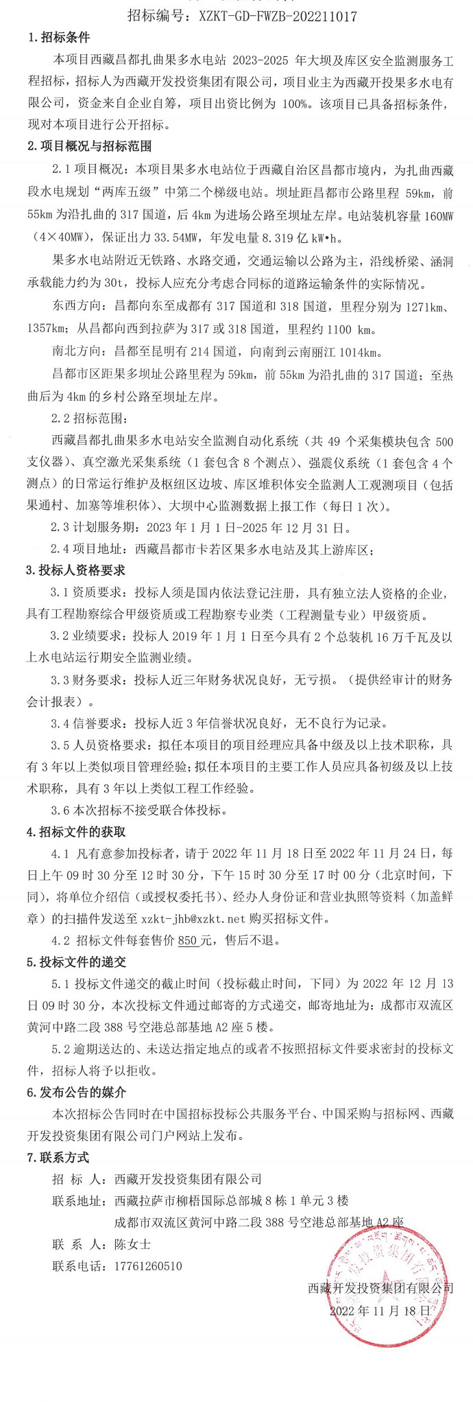 西藏昌都扎曲果多水電站2023-2025年大壩及庫區安全監測