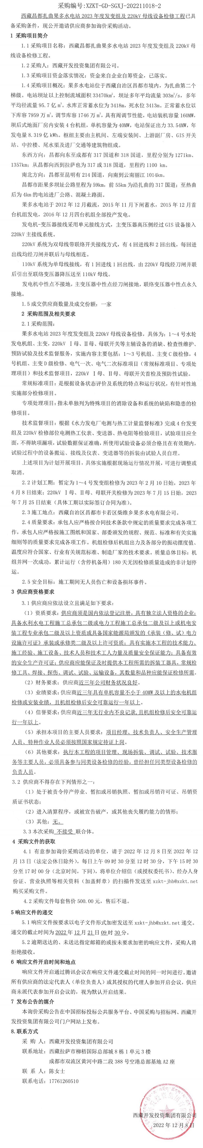 西藏昌都扎曲果多水電站2023年度發變組及220kV母線設