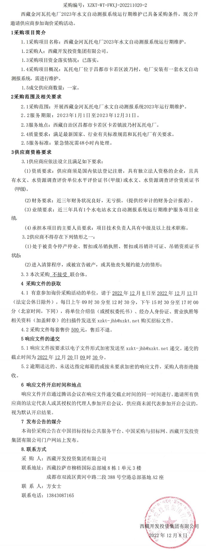 西藏金河瓦托電廠2023年水文自動測報系統運行期
