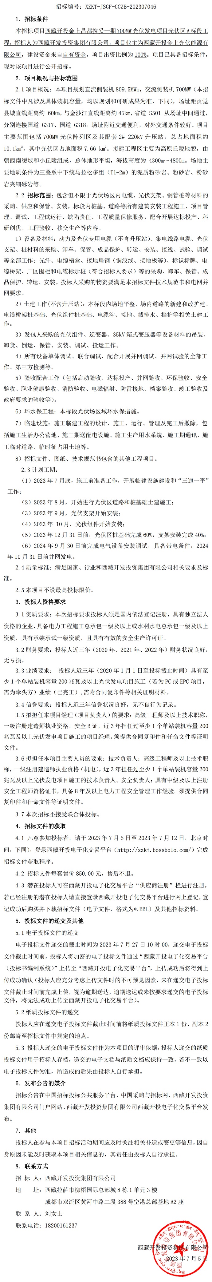 光伏區(qū)A標段工程招標公告