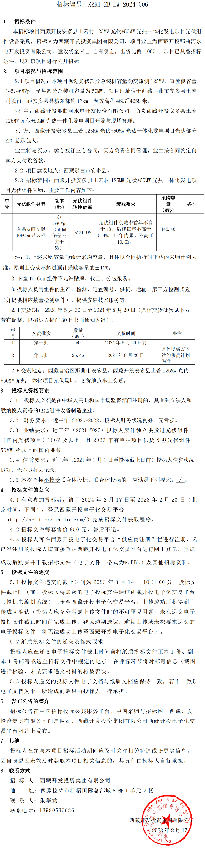 西藏開投安多縣土若村125MW光伏+50MW光熱一體化發(fā)電項(xiàng)目光伏組件設(shè)備采購(gòu)招標(biāo)公告