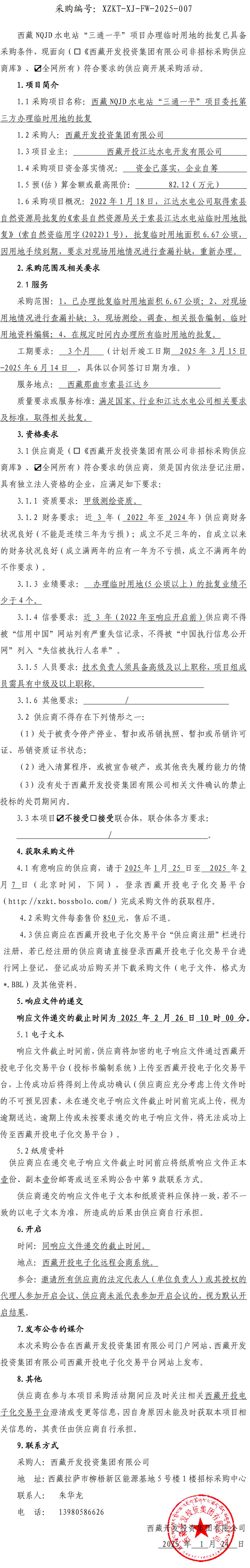 西藏NQJD水電站“三通一平”項目辦理臨時用地的批復詢價采購公告